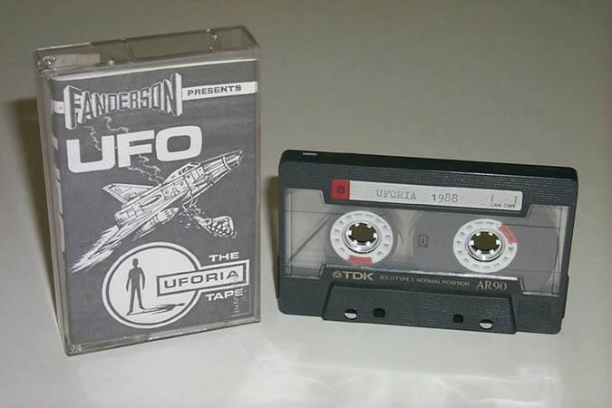 TITLE: THE UFORIA TAPE UFO REFERENCE: Interviews to Derek Meddings, Shane Rimmer, George Sewell, Gerry Anderson, Tony Barwick and Ed Bishop. CODE: / FORMAT: C90 MANUFACTURED: FANDERSON / UK PRODUCTION YEAR: 1988