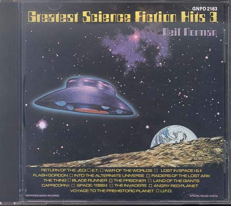 TITLE: GREATEST SCIENCE FICTION HITS 3UFO REFERENCE: Track 12: "U.F.O."; (Not Original Barry Gray's Music) CODE: GNPD 2163 MANUFACTURED: GNP / CRESCENDO RECORD CO., INC. / USA PRODUCTION YEAR: 1984 |