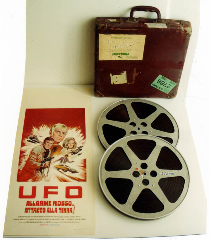 TITLE: "UFO …ANNIENTARE S.H.A.D.O. STOP. UCCIDETE STRAKER…" Compilation of: "The Square Triangle" ("Il Triangolo Quadrato"); "Kill Straker!" ("Uccidete Straker")CODE: / MANUFACTURED: KENT / CORONA FILM / ITALY REEL: 3 FORMAT: 16mm / Optical Sound / Color TYPE OF THE CONTAINER: Bag PRODUCTION YEAR: 1974 |