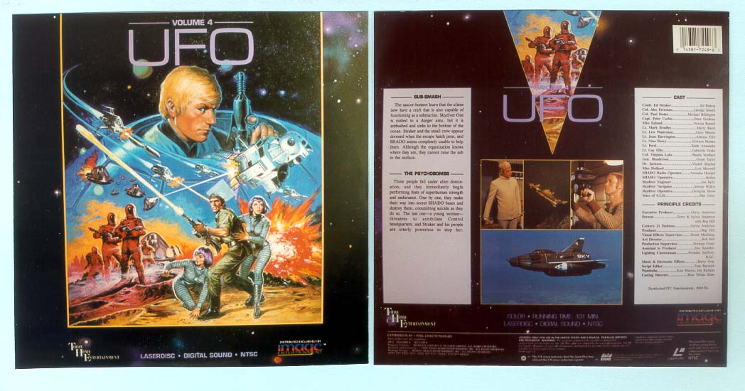 TITLE: UFO VOLUME 4 - "SUB-SMASH" / "THE PSYCHOBOMBS"CODE: N° ID7249TY MANUFACTURED: TODAY HOME ENTERTAINMENT - IMAGE ENTERTAINMENT/ USA FORMAT: LD / NTSC PRODUCTION YEAR: 1990 |