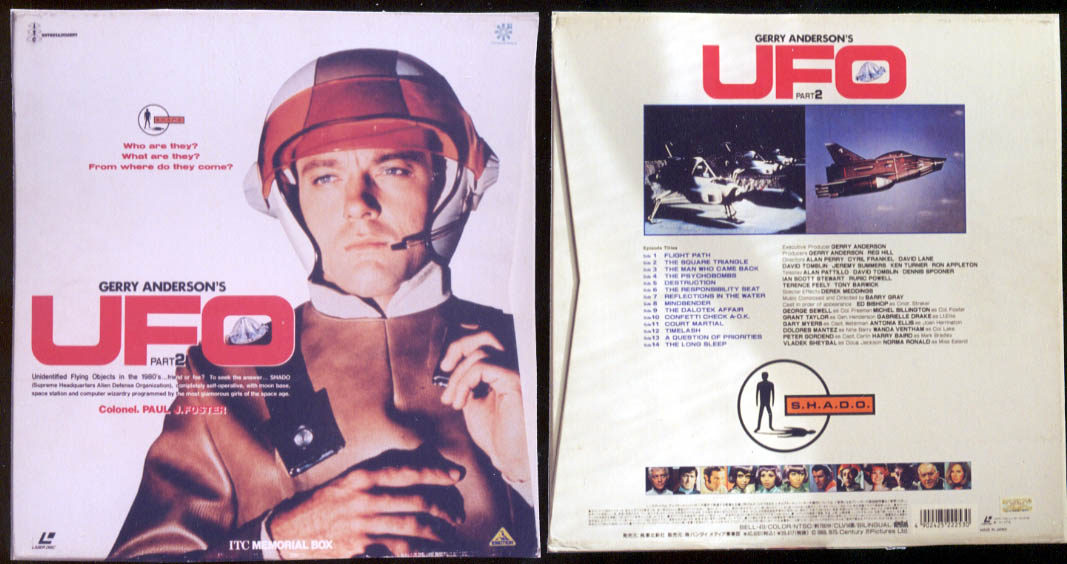TITLE: GERRY ANDERSON'S UFO PART 2 COLONEL PAUL J. FOSTER ITC MEMORIAL BOX - VOLUME 13 "A QUESTION OF PRIORITIES" / "THE LONG SLEEP"CODE: BELL 413 - VOLUME 13 MANUFACTURED: TOHOKUSHINSHA EMOTION / JAPAN FORMAT: LD / COLOR/NTSC BILINGUAL / CLV PRODUCTION YEAR: 1992 |