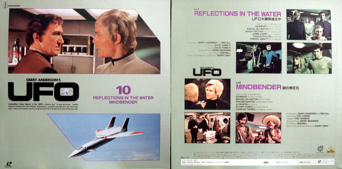 TITLE: GERRY ANDERSON'S UFO PART 2 COLONEL PAUL J. FOSTER ITC MEMORIAL BOX - VOLUME 10 "REFLECTIONS IN THE WATER" / "MINDBENDER"CODE: BELL 413 - VOLUME 10 MANUFACTURED: TOHOKUSHINSHA EMOTION / JAPAN FORMAT: LD / COLOR/NTSC BILINGUAL / CLV PRODUCTION YEAR: 1992 |