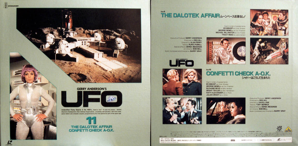 TITLE: GERRY ANDERSON'S UFO PART 2 COLONEL PAUL J. FOSTER ITC MEMORIAL BOX - VOLUME 11 "THE DALOTEK AFFAIR" / "CONFETTI CHECK A-O.K."CODE: BELL 413 - VOLUME 11 MANUFACTURED: TOHOKUSHINSHA EMOTION / JAPAN FORMAT: LD / COLOR/NTSC BILINGUAL / CLV PRODUCTION YEAR: 1992 |