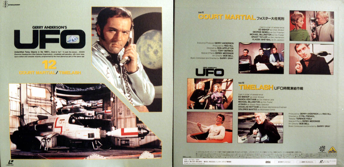 TITLE: GERRY ANDERSON'S UFO PART 2 COLONEL PAUL J. FOSTER ITC MEMORIAL BOX - VOLUME 12 "COURT MARTIAL" / "TIMELASH"CODE: BELL 413 - VOLUME 12 MANUFACTURED: TOHOKUSHINSHA EMOTION / JAPAN FORMAT: LD / COLOR/NTSC BILINGUAL / CLV PRODUCTION YEAR: 1992 |