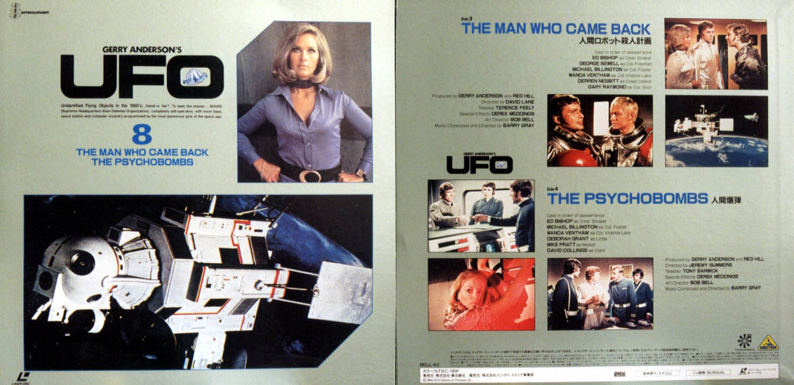 TITLE: GERRY ANDERSON'S UFO PART 2 COLONEL PAUL J. FOSTER ITC MEMORIAL BOX - VOLUME 8 "THE MAN WHO CAME BACK" / "THE PSYCHOBOMBS"CODE: BELL 413 - VOLUME 8 MANUFACTURED: TOHOKUSHINSHA EMOTION / JAPAN FORMAT: LD / COLOR/NTSC BILINGUAL / CLV PRODUCTION YEAR: 1992 |