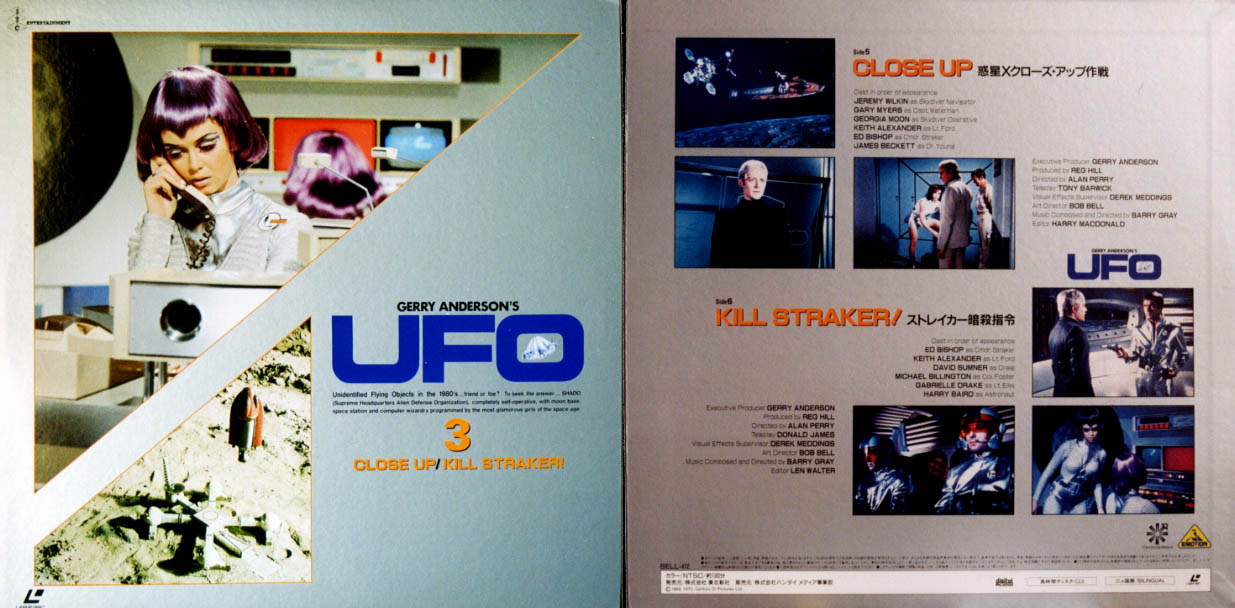 TITLE: GERRY ANDERSON'S UFO PART 1 COMMANDER ED STRAKER ITC MEMORIAL BOX - VOLUME 3 "CLOSE UP" / "KILL STRAKER!"CODE: BELL 412 - VOLUME 3 MANUFACTURED: TOHOKUSHINSHA EMOTION / JAPAN FORMAT: LD / COLOR/NTSC BILINGUAL / CLV PRODUCTION YEAR: 1992 |