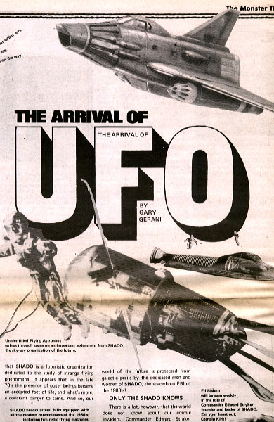 TITLE: THE MONSTER TIME SPECIAL ISSUEUFO Reference: UFO Article (p. 22-23) CODE: N. 1 AUTHOR: Gary Gerani SIZES: mm. 202x254 FORMAT: Papercover - 40 p. MANUFACTURED: THE MONSTER TIMES PUBLISHING COMPANY, INC. / USA PRODUCTION YEAR: 1973 |