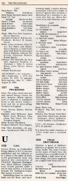 TITLE: TELEVISION 1970-1980UFO Reference: UFO Review (p. 206) CODE: ISBN 0-498-02539-X AUTHOR: Vincent Terrace SIZES: mm. 216x280 FORMAT: Papercover - 322 p. MANUFACTURED: A.S. BARNES & COMPANY, INC. / USA PRODUCTION YEAR: 1981 |